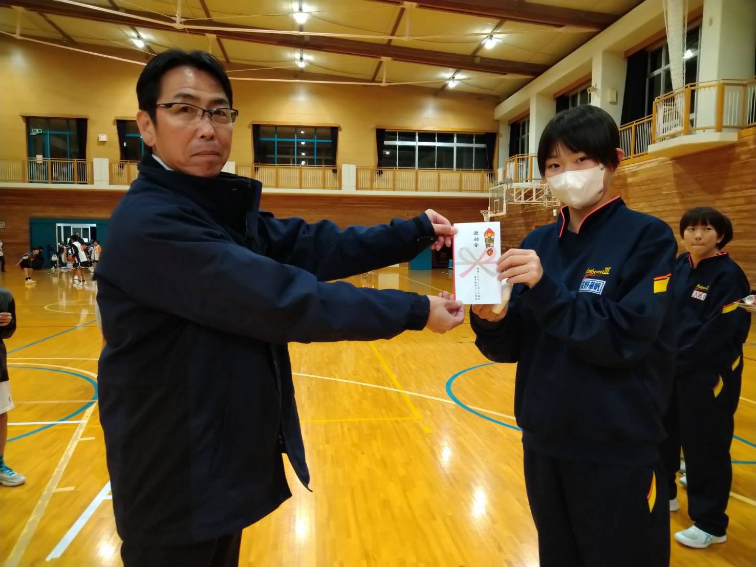 - 県南バスケットボール協会より、郡山市立第三中学校に激励金が贈られました。